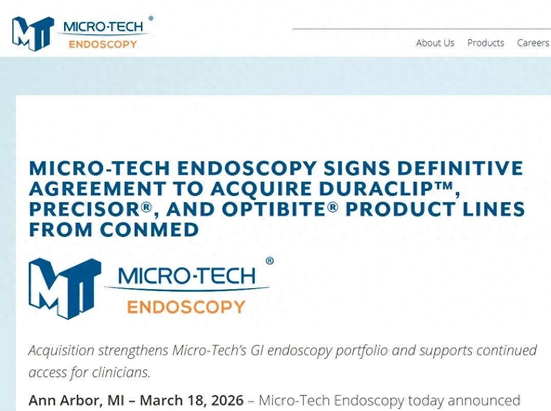 来源:器械之家,未经授权不得转载,且24小时后方可转载2026年3月18日,南微医学宣布其美国子公司与纽交所上市公司CONMEDCorporation(股票代码:CNMD,下称“CONMED”)达成资产交易协议,计划收购CONMED旗下Duraclip™、Precisor®和Optibite