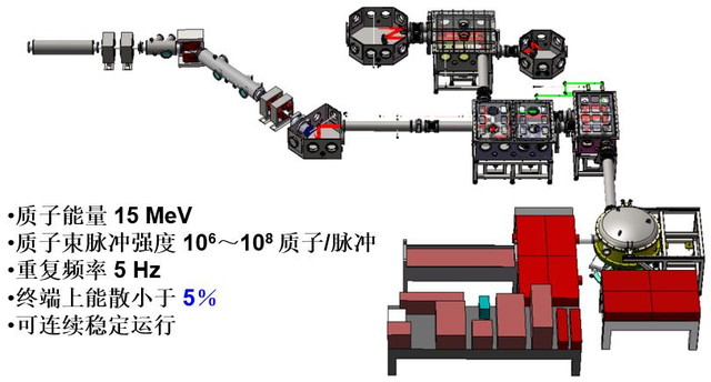 “拍瓦激光质子加速器装置研究与应用示范”项目针对肿瘤治疗需求,突破拍瓦级激光器、高对比度和高光强激光品质控制、拍瓦级激光器高重频自动化打靶、先进纳米靶材高品质大批量制备、百兆电子伏量级高能质子产生、超高流强消色散质子束传输、大能散质子束能谱剪裁、激光质子束治疗头、面向激光质子束的放疗计划系统等一系列关键技术,开发具有自主知识产权、质量稳定可靠、核心部件国产化的激光质子放疗系统,并开发相关软件和数据库,实现质子放射肿瘤治疗。