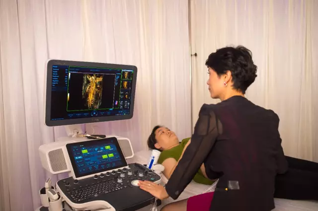 其显示屏以及支撑臂可以多角度的自如转动以方便医师观察,整台机器大气、时尚、简约,满足于不同的临床应用场景。创新的触控手势操作打破了传统按键式操作,带给医生全新的操作体验。优良的工业设计展现出了极佳的视觉美感与实用性。随后一段绚丽的动画展示出了Resona7在各个成像模式下的应用图像,让与会者对其效果有了个大致的概念。