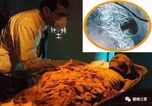 在埃及卢索伊城郊外出土了一具2500年前的木乃伊身上,发掘者听到尸体内有声音而感到大为诧异。开罗一家医院的医生解剖了这具木乃伊,发现能发声的原来是由黑水晶制造的心脏起搏器,此事震惊了世界。但疑点随之也出现了,因为我们地球上只出产白色水晶,从没发现过含有放射性的黑水晶!